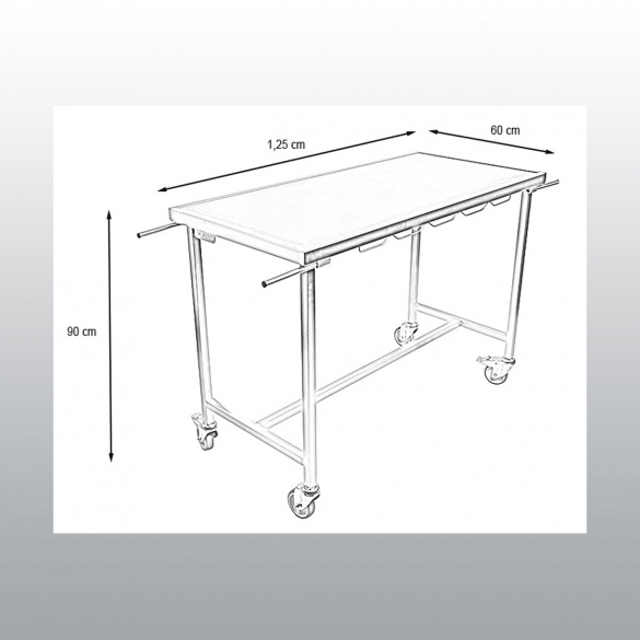 Dimensions plateau : 125 x 60 x 90 cm (L x l x h).