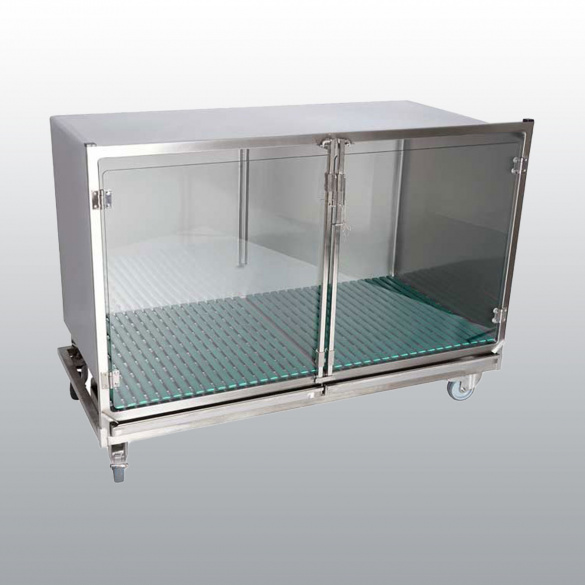 685097 | cage inox avec bac, caillebotis et porte verre | extérieures (l x h x p) double porte : 1405 x 830 x 690 mm intérieures (l x h x p) double porte : 1345 x 730 x 690 mm |