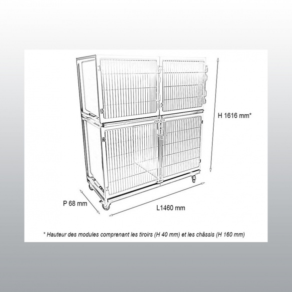 - deux cages de format B : 735 mm x 700 mm x 710 mm (l x p x h),