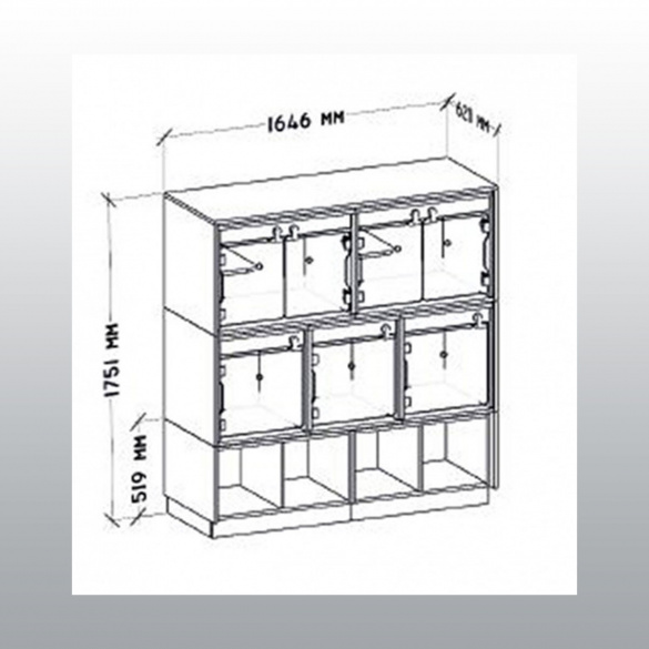 - 3 cages -24 h Silver, 2 cages + 24 h Silver avec joues latérales de finition et rangements bas ouverts.