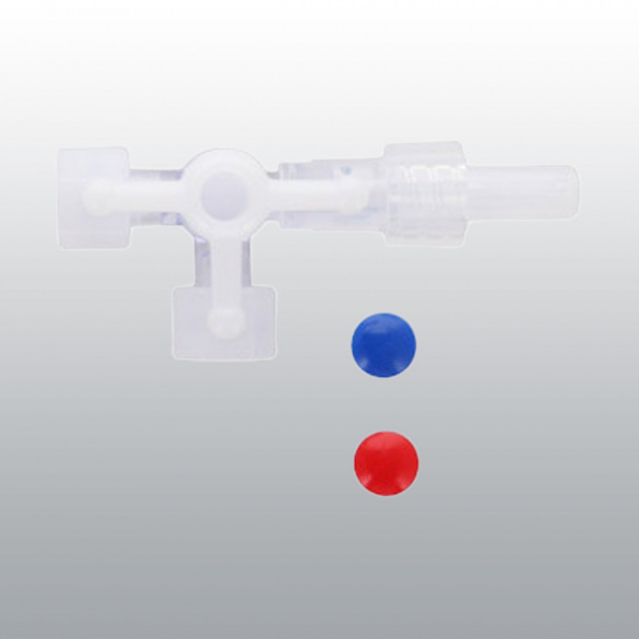 Fourni avec un robinet 3 voies en résine époxy colorée et des bouchons de couleur et d'identification (rouge pour l'accès artériel, bleu pour l'accès veineux).