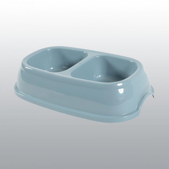 Gamelle plastique antidérapante.Couleur : bleu acier.Contenance : 2 x 0,2 l.Lavable au lave vaisselle.