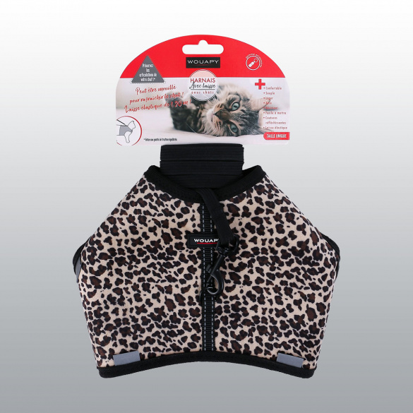 Harnais confortable et sécurisant pour chats avec fil et étiquettes réfléchissants, vendu avec la laisse élastique assortie.