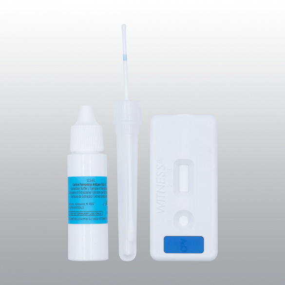 Coffret pour la détection du Parvovirus dans les prélèvements de selles de chien.