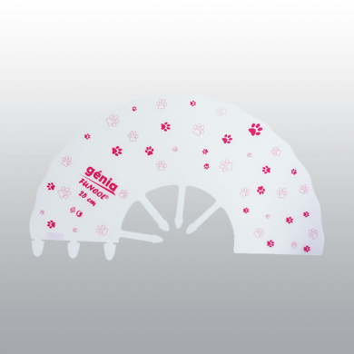 Carcan transparent avec des impressions de couleur en forme de pattes.