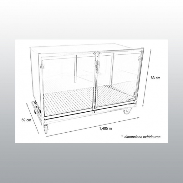 685097 | cage inox avec bac, caillebotis et porte verre | extérieures (l x h x p) double porte : 1405 x 830 x 690 mm intérieures (l x h x p) double porte : 1345 x 730 x 690 mm |