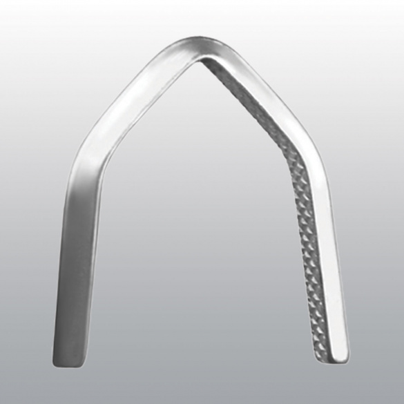 Forme en chevron : le clip se ferme d'abord par ses extrémités, pour enserrer le vaisseau avant occlusion complète.