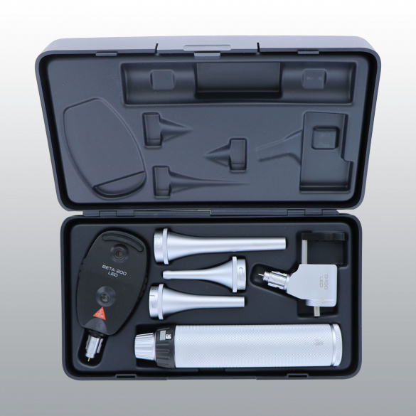 Trousse comprenant :1 tête otoscope fendue G100 LED,1 tête ophtalmoscope BETA 200 LED,3 spéculums métal fermés,1 étui rigide.Garantie : 5 ans.