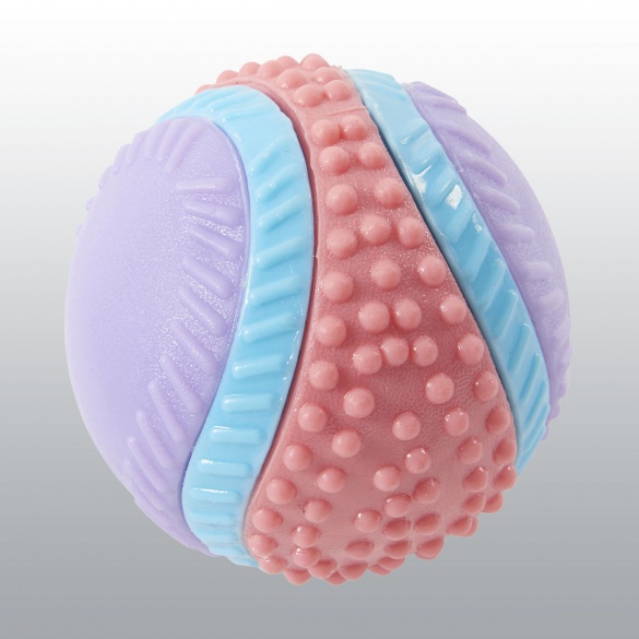 Balle à trois couleurs différentes avec des motifs pour stimuler la vue.