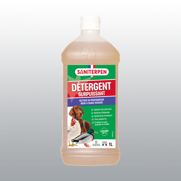 Mode d'emploi : diluer Saniterpen Détergent Surpuissant dans l'eau.