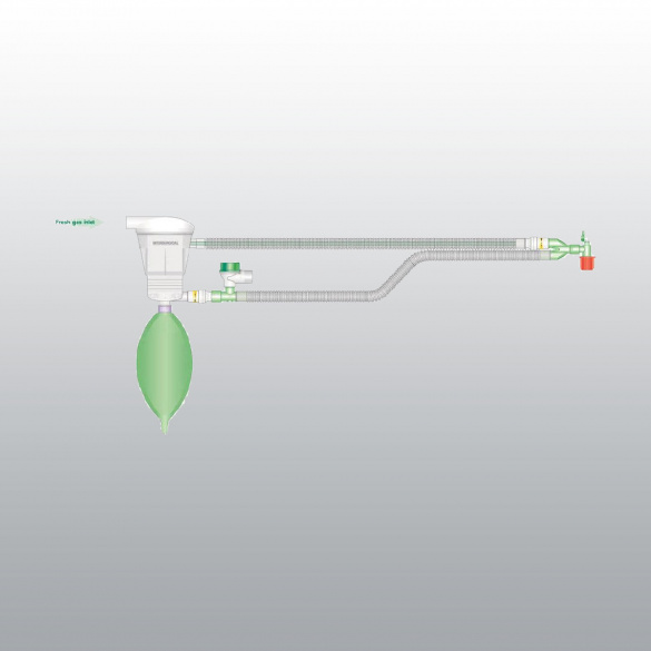 Equipé d'un canister de chaux sodée de 500 g, d'une valve uni-directionnelle, d'une valve APL, d'un ballon de 2 litres, d'une évacuation des gaz expirés.