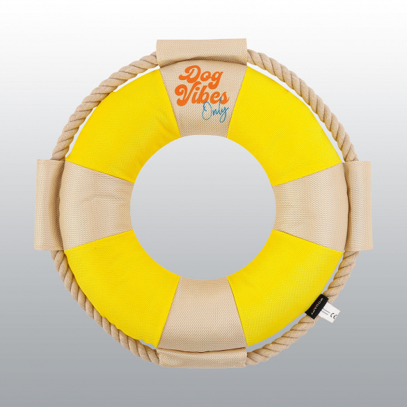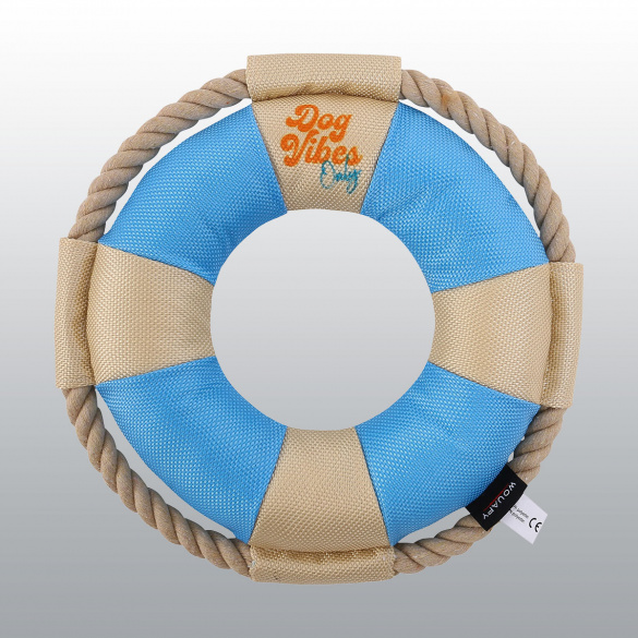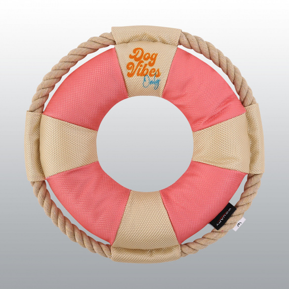 Jouet pour chien en forme de bouée de sauvetage aux couleurs pastels.