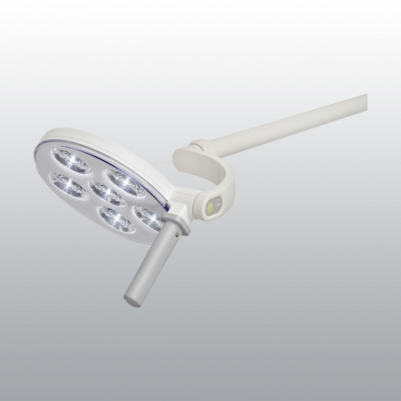 Particularités : gradable en continu, optique diamant, poignée stérilisable, fixation plafond, tige plafond réglable lors du montage (25 - 120 cm).