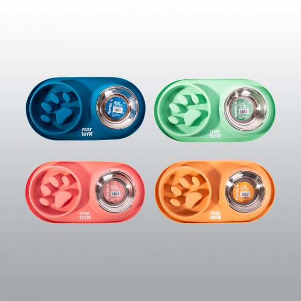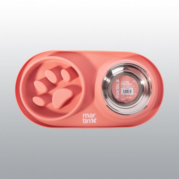 Bol en inox amovible et bol en silicone anti-glouton.